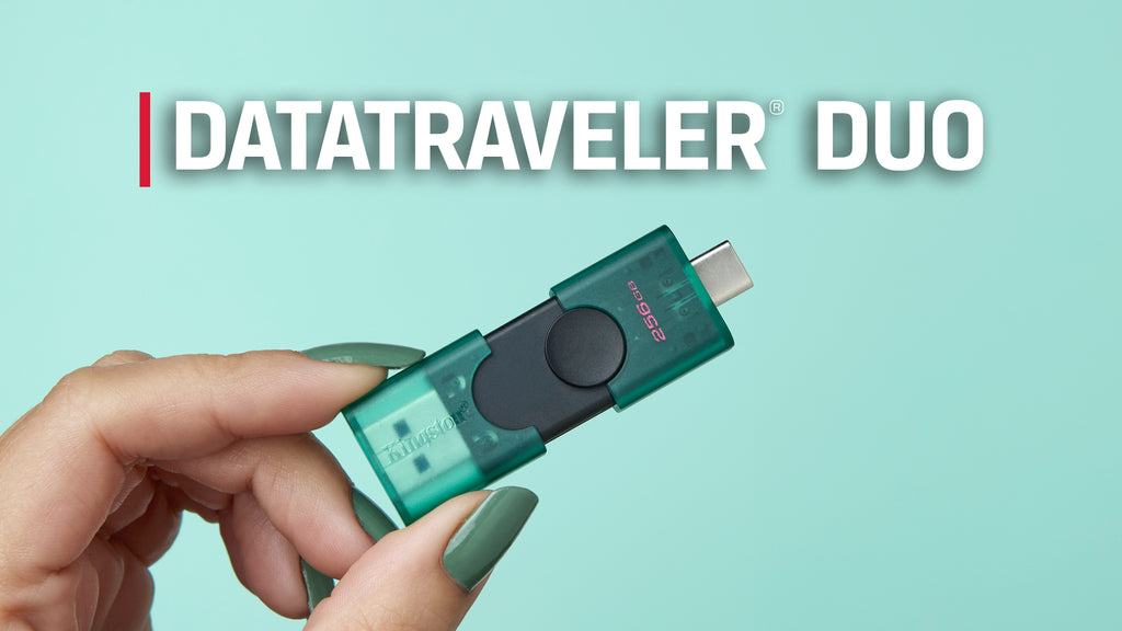 Kingston® DataTraveler® Duo features dual USB connectors that work with both USB Type-A and USB Type-C®1 ports for maximum compatibility. The innovative dual moving cap design makes the drive stylish and convenient, with no cap to lose. With capacities of up to 256GB2, you can easily access and transfer documents, photos, videos, music and more between your USB-A and USB-C devices with the DT Duo. The product is backed by a five-year limited warranty, free technical support and legendary Kingston® reliability.